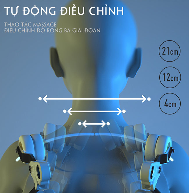 – Mat xa vùng đầu các con lăn silicon kích thước nhỏ được thiết kế riêng biệt giúp thư giãn phần nửa sau đầu và gáy, phần đỉnh đầu và phía trước thái dương sử dụng kỹ thuật xoa bóp giúp người ngồi ghế được thư giãn thỏa mái vùng đầu tăng cường lưu thông máu não. Xoa dịu hệ thống thần kinh, giảm căng thẳng, lo âu, giúp giấc ngủ ngon và sâu hơn.