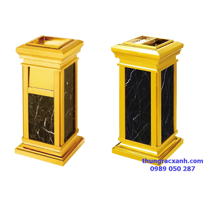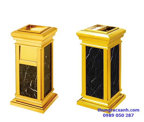 -Đây có thể coi là thùng rác phổ biến nhất, được sử dụng nhiều cho bộ phận tiền sảnh. Cấu tạo sẽ bao gồm phần khung inox, các mặt đá (có thể là đá tự nhiên hoặc đá nhân tạo), phần lõi thùng bằng tôn hoặc nhựa.