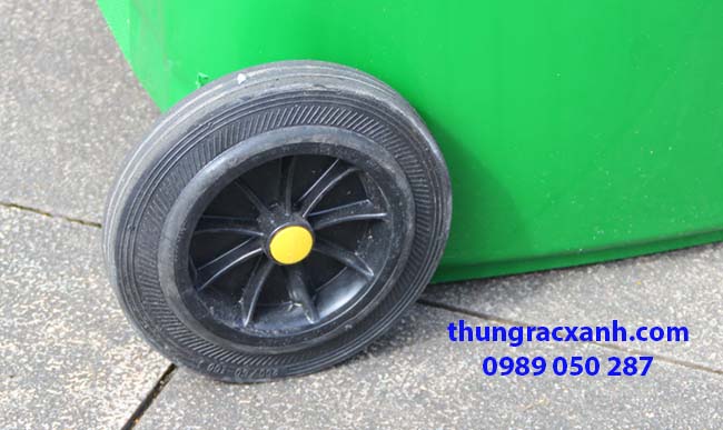 – Trục bánh xe thùng rác được làm bằng thép đặc và xi mạ chống han gỉ trong quá trình sử dụng