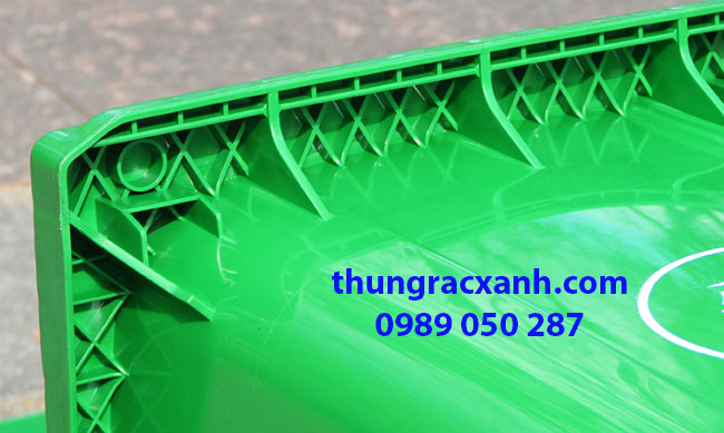 – Thùng rác có 2 bánh xe được đúc đặc bằng cao su có thể chịu được va đập và chịu tải trong, dễ dàng di chuyển đến các nơi tập kết rác