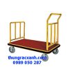 Xe đẩy khách sạn là loại xe đẩy hành lý chuyên dùng ở các khách sạn lớn, xe được làm từ chất liệu inox, khung inox mạ vàng đẹp, chắc chắn, có thiết kế hình vòm, bên trên có các thanh để treo quần áo…